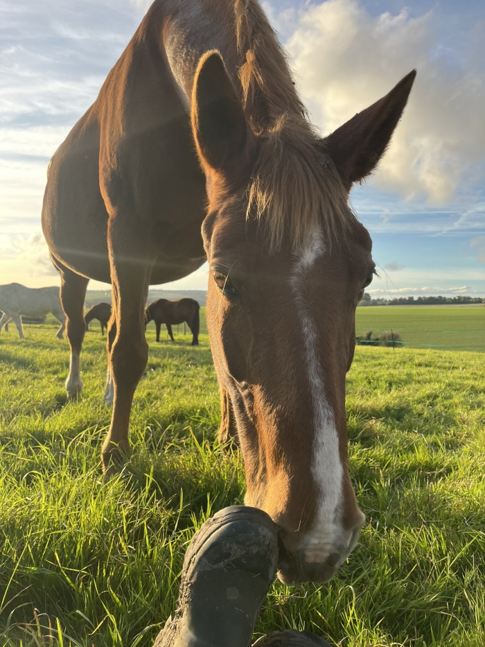 The vast majority of the work we do with our herd at Horserenity involves them being at liberty. Occasionally we may use a head collar to move them from one area to another but what this means is that, unless there is a welfare or safety consideration, they are free to come and go as they please. They have plenty of space to move around and at any point they can simply step away from an interaction. We also spend a lot of time observing their body language and communication and always do our best to listen to their wishes and preferences. There are currently eight members of our main herd, plus another smaller herd that we sometimes spend time with, so it also means that interactions with humans are not always with the same one or two horses.